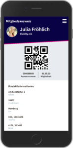 Aber auch an analoge Technologien wurde gedacht: Auf Knopfdruck kann in Clubity die Druckvorlage für einen Mitgliedsausweis „zum Anfassen“ erstellt werden. Der integrierte QR-Code beinhaltet die gleichen Möglichkeiten, wie sein digitaler „Bruder“.